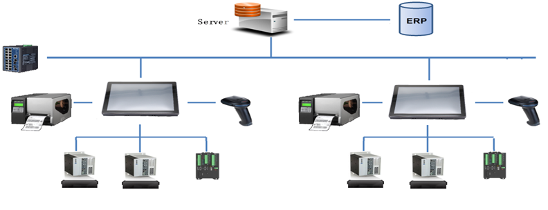 MES下層SCADA數據采集與監控控制系統,SCADA可以連接PLC,傳感器、RFID讀寫器、      條碼掃描槍、條碼打印等。