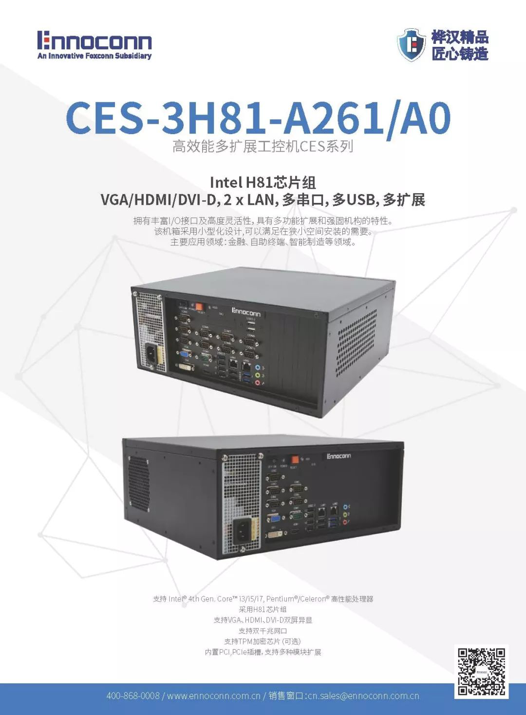 在人工智能的驅(qū)動下,自助服務終端充斥著每個行業(yè),其市場規(guī)模不斷擴大,產(chǎn)品功能日趨智能化、完善化。富士康集團Ennoconn順應趨勢,致力為智能自助終端行業(yè)“添磚加瓦”。Ennoconn CES-3U系列金融設備主控機,為您提供智能自助終端解決方案,歡迎前來咨詢!